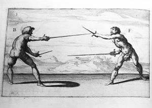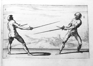 Even as one cannot make some composition of beautiful and judicious writings without employing the letters of the alphabet, so does it occur in this, our art of fencing, that without the following guards, and some voids and retreats of the body which come to be the foundation of this practice, one could not in any way demonstrate this, our use; therefore the following six figures are designated alphabetically. “A” demonstrates prima to you, and seconda is presented to you as “B”, and terza as “C”. Quarta is named as “D”, quinta as “E”, and sesta as “F”.