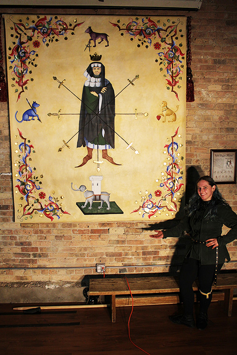 Erin is also an artist and created a magnificent painting of Fiore’s Segno, to be hung on the wall in the Chicago Swordplay Guild. Here is a blog post from Tasha Kelly about it: https://cottesimple.com/manuscript-interpretation/coloring-segno-della-spada/