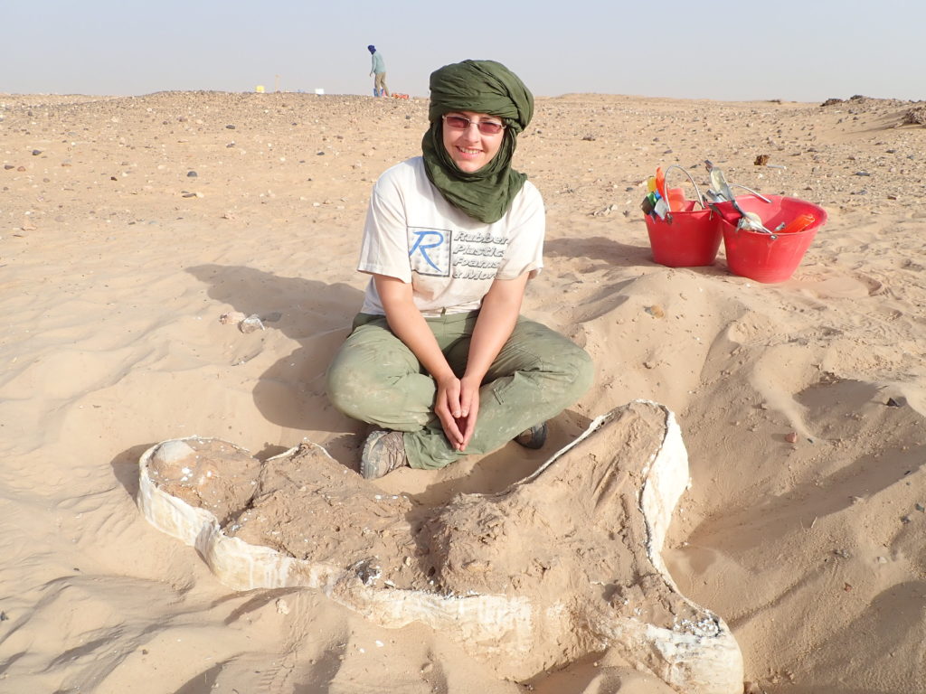 EF: So I work in the field of paleontology. Yeah. I am a fossil preparator. So we are considered like a lab technician in the realm of paleo. And so what I do basically is well, actually, first, I’ve been doing this for quite some time. I started volunteering in paleontology right when I graduated high school. It was like one of those things and some of my paleo friends at the Field Museum will attest to this, that I’m like the annoying kid when I’m 16, like, can I please play with fossils? And, you know, no, not until you’re 18. So when I was 18, I finally got to the museum and started working with fossils. And paleo is one of those fields where there’s not a lot of funding for it. You know, everyone loves dinosaurs and fossils, but you really have to express the importance of, say, what our job does for the bigger picture to get people to fund it type of thing. So most of our funding comes from people that love what we do. And so there’s a lot of room for people to come in and volunteer doing this. And that’s how I got started. And I’ve been doing it ever since then, and that was in 2000 when I started. So yeah, I’ve been doing this for quite some time. And so what I do basically is I help my boss. He is a scientist in paleontology and he decides where we’re going to be digging up fossils around the world. And I go and I help them do that. And as we bring these fossils back, I and a couple other preparators in our lab here in Chicago, open them up and we clean them and we get them all ready for scientists to study.