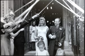 GW: I got my wedding suit made by a tailor in Singapore, and it’s lovely. Good suit. It has a morning coat, knee length jacket. It is beautiful and I needed to have it adjusted so that my sword would hang right. Of course, I wasn’t going to get married without wearing a sword. So I took it to a friend of mine in Helsinki who is a tailor.