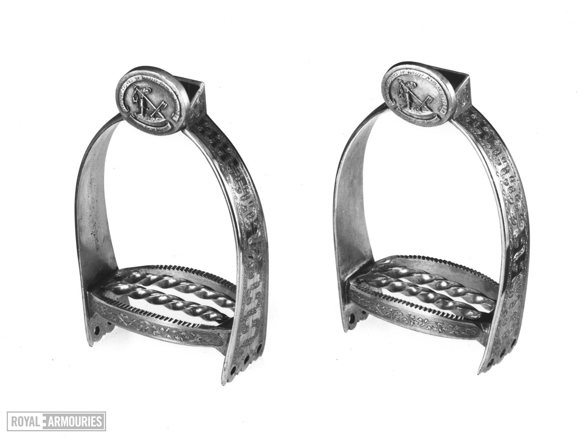 Yeah. So we’re talking about a pair of two pairs of presentation stirrups that I wrote an article for in The Field magazine. And these stirrups are interesting for a number of stories that they tell us. So strapping, “a strapping set of stirrups” essentially refers to the decoration on the stirrups. So there’s the two pairs of decorative and presentation stirrups. And they are associated with Henry Lowther, the third Earl of Lonsdale. And they were made around 1830. They’re quite modern, yes. But what’s interesting about them is that they are mimicking a style that is much earlier. So sort of16th and 17th century stirrups so they have twisted bars to form the tread and I’ll send you images of these so your listeners can have a really good look at them. So they have twisted bars that make up the tread, they’ve got quite a broad arch. And they have this engraved decorative strap work on the arch. And the strap work on these stirrups is very similar to the kind of decoration we see on armours that are produced in the royal Greenwich workshop which was established by Henry VIII in 1515. And they are very similar to a pair of stirrups that belong to an armour at the Wallace collection which belonged to Sir Thomas Sackville, Lord Buckhurst. And the whole of the armour is decorated with this beautiful ribbon strap work. And that’s almost identical to what we’re seeing on these 19th century stirrups. So they’re a much more modern piece of equipment, the presentation stirrups. The Lowthers were very well known into sports, notable sports persons, they were involved in the hunt, that kind of thing. But they’re very much reaching back to these earlier styles. And I just find that really interesting that they do that.