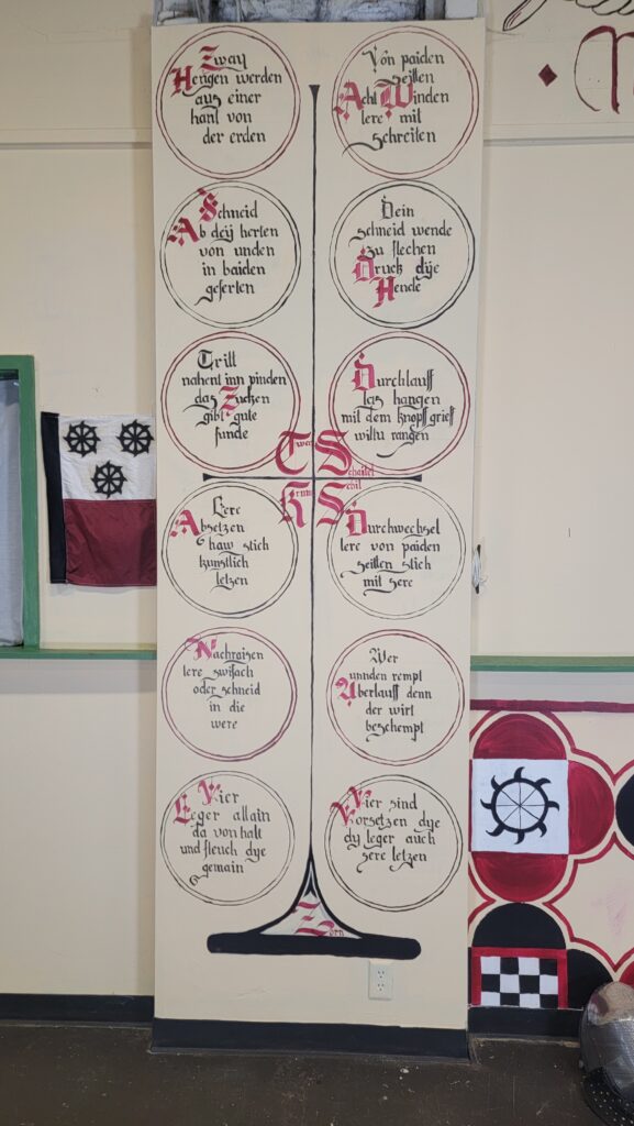 We go deep into Liechtenauer’s Hauptstücke and the Zornhau. Here is the photo of the tree that’s on the wall of Jessica’s Turnhalle: