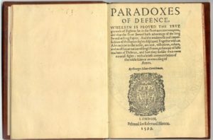 BC: This is so interesting because there’s a point, and I can’t quite remember where it was in Paradoxes, where it’s like Shakespeare lifted the description and gave it to Mercutio when Mercutio was complaining about reversos and stoccatas. The problem is, of course, the Silver Paradox is in 1599, and everyone thinks that Romeo and Juliet was around 1594.